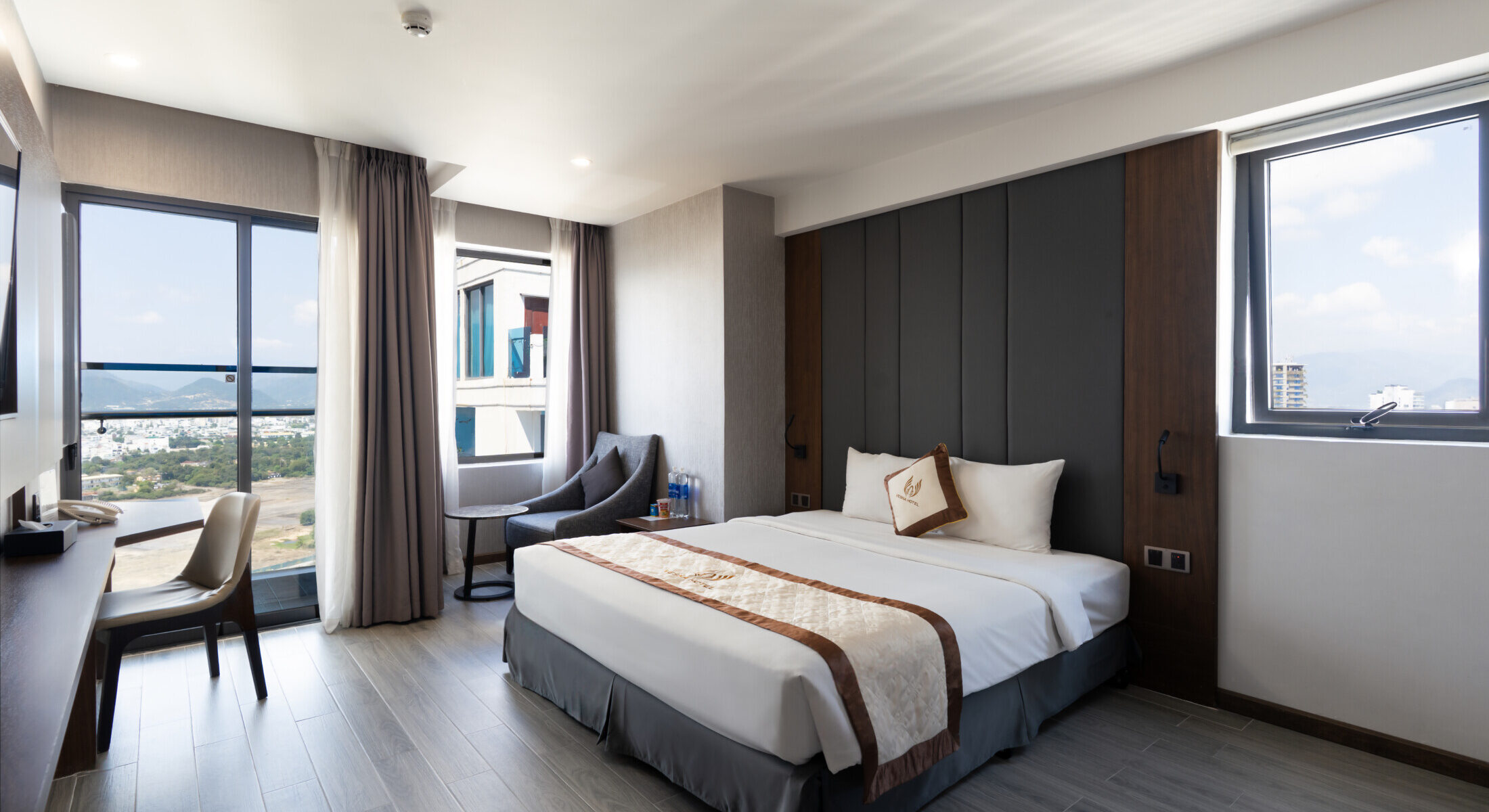 Starting from 1,700,000 VND per room per night, guests will enjoy a one-night stay in a Premier Deluxe City View room, offering a spacious outlook over the city skyline and the harmonious blend of urban life and ocean scenery. The room is thoughtfully designed with modern comfort and relaxing aesthetics, ensuring a pleasant and memorable stay in every detail.