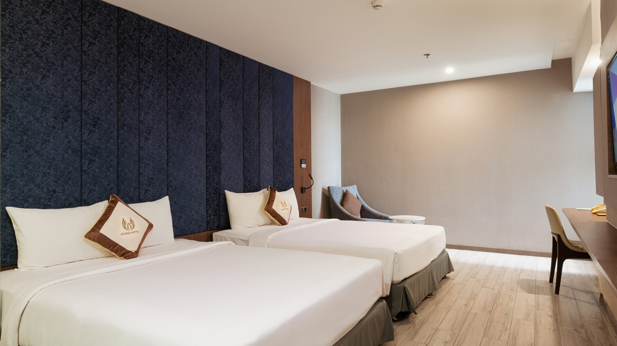 Tọa lạc trên cung đường biển Trần Phú, Vesna Hotel Nha Trang mang đến hệ thống phòng nghỉ được thiết kế tinh tế, nơi phong cách kiến trúc đương đại hòa quyện cùng nét thanh lịch cổ điển. Không gian phòng ấm áp với nội thất gỗ và điểm nhấn kết hợp tiện nghi chuẩn 5 sao, tạo nên trải nghiệm nghỉ dưỡng riêng tư, sang trọng và đầy cảm xúc giữa lòng thành phố biển.